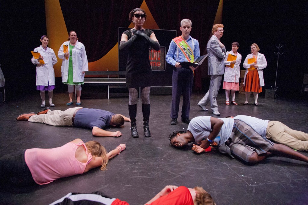 A Killing Game is dog & pony dc’s mash-up of Eugene Ionesco’s play Killing Game, Orson Welles’ infamous War of the Worlds 1938 radio broadcast, and Fluxx, the card game with ever-changing rules.