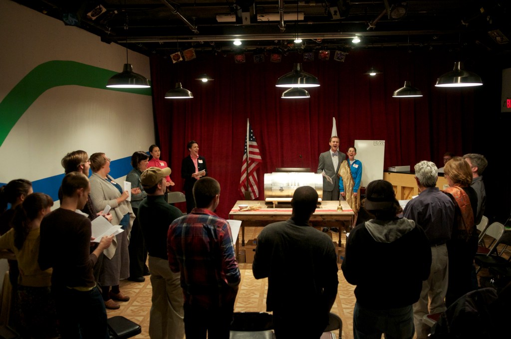 Beertown Takes America provided an exciting opportunity for dog & pony dc to connect with both new and old collaborators as the production is re-shaped to fit each theatre and its community, with each stop of the tour featuring a newly customized Beertown. dog & pony dc ensemble members and local artists will form a creative team to rehearse and perform the show, shaping it to reflect local concerns, hot-button issues, and history. During performance, the audience is then empowered to generate dialogue specific to their values and experiences, mirroring the pulse of each particular community.